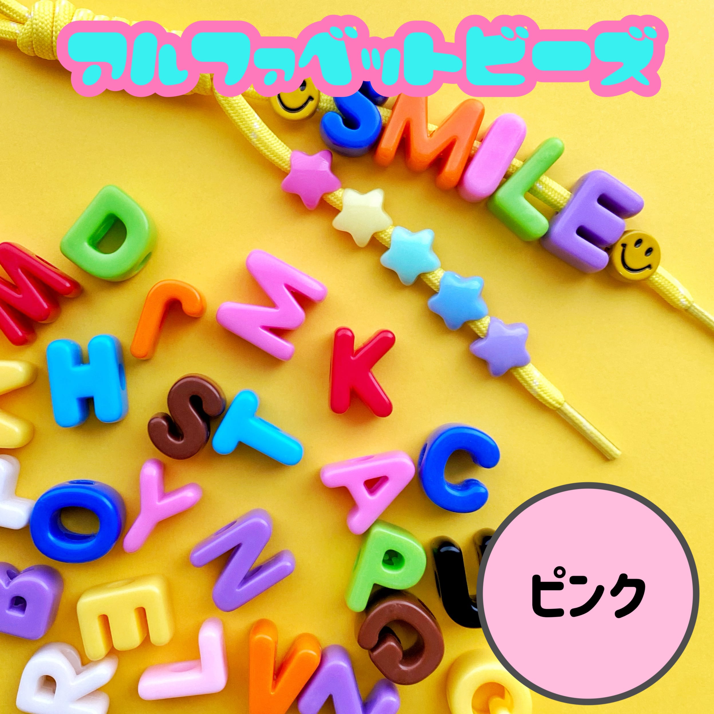 アルファベット ビーズ 1個【ピンク】